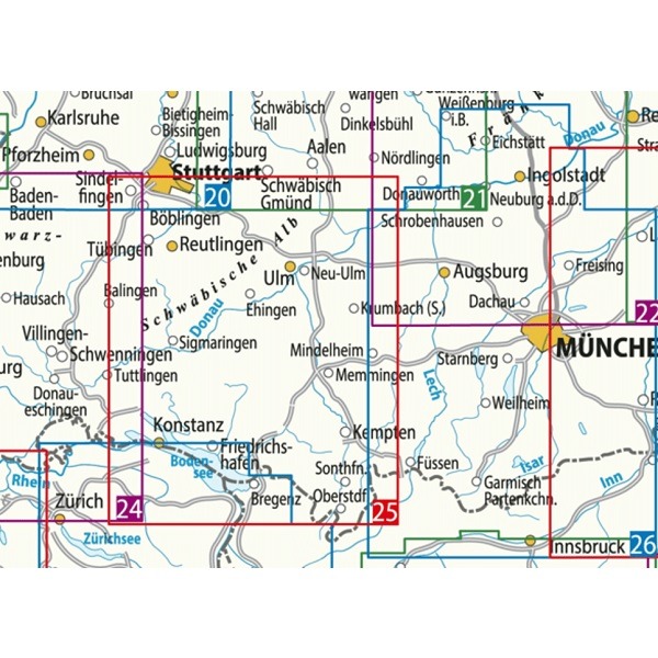 ADFC-serie Radtourenkarte 25 - Bodensee/Schwabische Alb - 1:150.000