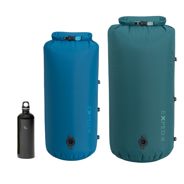 Exped heeft bagagezakken in allerlei soorten en maten. Deze waterdichte compressiezak met oprolsluiting is gemaakt van gerecycled 70 D ripstop nylon. Bijvoorbeeld erg handig om het volume van de slaapzak of kleding te verminderen. De zak is kleiner te maken door middel van de 3 compressiebanden en het ventiel.