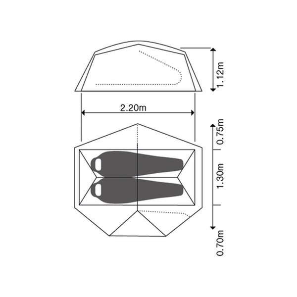 | Afmetingen | 220 x 130 x 115 LxBxH binnentent (2,9 m2) |