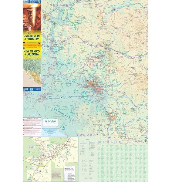 We are very pleased to announce an expansion in our coverage of the USA. Arizona and New Mexico are both lovely travel destinations, with such must-see experiences as Grand Canyon, some of the best parts of Route 66, and the Titan Missile Base south of Tucson, Petrified Forest, Saguaro, Carlsbad Caverns National Parks and Monument Valley, State Parks and National Forests with an excellent inset of Flagstaff(1:50.000 Scale), and New Mexico fills most of the other side (with a bit of Colorado thrown in) and a large inset of Albuquerque(1: 100.000 Scale) as icing to the cake! This is an excellent map to show off two of the most interesting States in America.