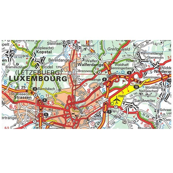 The Michelin National road map of the Grand Duchy of Luxembourg at 1:150,000 scale is ideal for trip & route planning and touring. The map gives comprehensive coverage of national road networks showing all major motorways, dual carriageways, national & regional main roads and some single-lane roads. Also shows unsurfaced roads, tracks, and major footpaths. The map is divided by grid showing latitude and longitude.