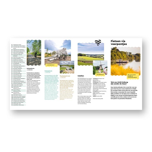 De geheel vernieuwde fietsknooppuntenkaart laat je Zuid-Limburg ontdekken als fietsparadijs. Langs de Maas, over de heuvels en door uitgestrekte bossen: met de fietsknooppuntenkaart krijg je snel overzicht over het gebied en plan je makkelijk een mooie fietstocht. Recente wijzigingen door de Parkstad Buitenring en nieuwe knooppunten in de gemeenten Beekdaelen, Stein en Sittard-Geleen zijn uiteraard meegenomen.